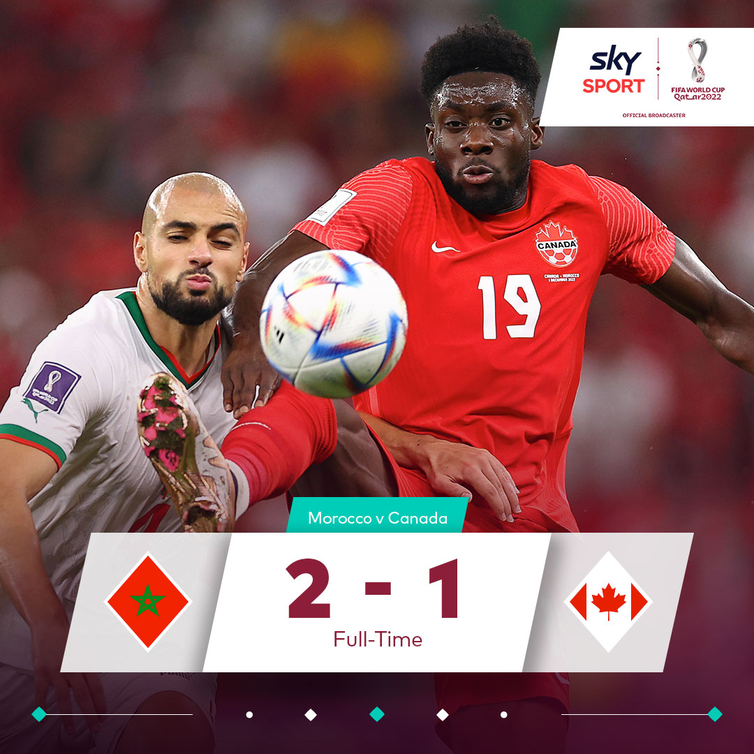 Web 4 hours agoFINAL SCORE Canada 1 Morocco 2 Morocco got off the mark early with Hakim Ziyech capitalizing on a poor clearance by Canada goalkeeper Milan Borjan.